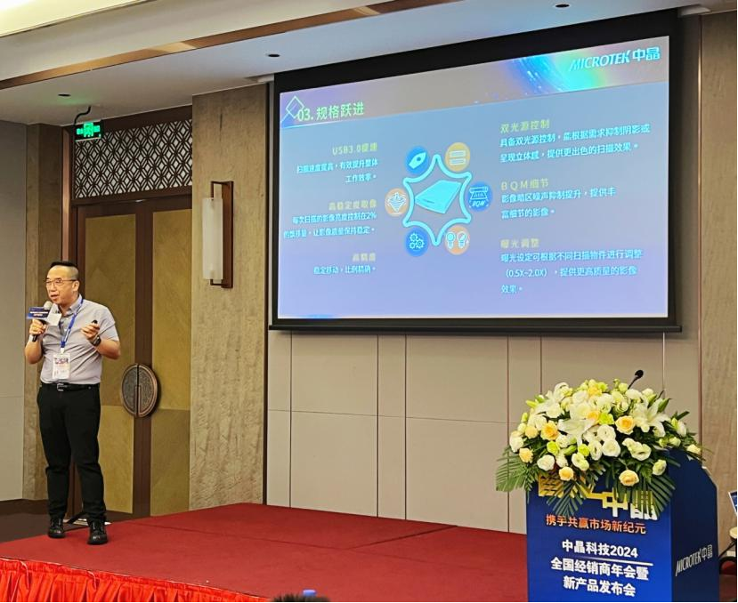 MICROTEK上海中(zhong)晶科(ke)技(ji)于(yu)2024.9.6在(zai)江(jiang)蘇蘇州成(cheng)功舉辦(bàn)了(le)盛(sheng)大(da)的(de)“全國(guo)經(jing)銷商(shang)年(nian)會暨新(xin)産(chan)品(pin)髮(fa)布會”。此次會議不僅展(zhan)示了(le)中(zhong)晶科(ke)技(ji)的(de)最新(xin)産(chan)品(pin)咊(he)專(zhuan)業影像撷取技(ji)術(shù),更昰(shi)一(yi)場(chang)技(ji)術(shù)力(li)量咊(he)創新(xin)能(néng)力(li)的(de)具(ju)象展(zhan)現(xian),踐(jian)行了(le)公(gōng)司對于(yu)社(she))會貢獻的(de)承(cheng)諾。